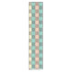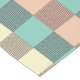 A seamless plaid pattern with alternating pastel squares in turquoise, cream, and beige. Each square is filled with a crisscross grid design, creating a vintage and orderly feel.