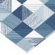 Este corredor de tablas presenta un patrón geométrico marcado con líneas en azul tonal para un aspecto moderno.