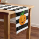 El corredor de mesa para acentuar la decoración de la mesa se muestra en un diseño de rayas negras y blancas con una impresión de Halloween. Personalizar este artículo o compra tal cual. Imagen de stock vecteezy.com