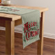 Green and red 1876 Merry Christmas Long Table Runner for holiday parties.