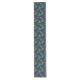This table runner is shown with a colorful Mardi Gras pattern print.