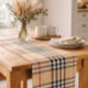Camino De Mesa Largo Moda Tartán blanco moreno negro blanco