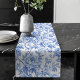 Camino De Mesa Largo Traditional Blue Toile Roses Floral Table Runner