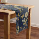 Camino De Mesa Mediano Botanical Gold Flowers Blue Pattern