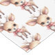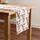 Table runner with an illustration of an adorable baby deer. Big eyes big ears with a large head and little brown antlers. Wearing a big red bow.