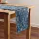 Camino De Mesa Mediano Patrón de pájaro nórdico de línea blanca sobre azu