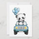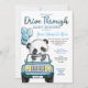 Conduzca a través de Boy Baby Shower con Baby Panda en un auto azul y globos para la NUEVA ducha de bebé NORMAL en la pandemia Covid.