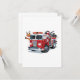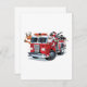 Camión de bomberos de Navidad retro de dibujos animados, Santa y renos