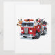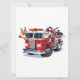 Camión de bomberos de Navidad retro de dibujos animados, Santa y renos