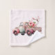 Toalla con un bonito y caprichoso ilustracion acuático. Color rosa y rosa. Camión de recogida con una cama de madera antigua con flores de flores de cerezo.