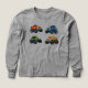 Esta divertida camiseta de manga larga para niños presenta cuatro camiones monstruo de dibujos animados coloridos en la parte delantera, perfecta para los pequeños fanáticos de los camiones. Diseñada para la comodidad y el juego, incluye un nombre personalizable impreso en la parte posterior, lo que la convierte en un regalo personalizado considerado para cumpleaños, días festivos o uso diario. Un regalo infantil personalizable destacado.