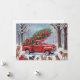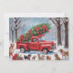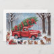 Una tarjeta de Navidad con un camión rojo y un árbol de Navidad en el bosque cubierto de nieve rodeado de un grupo de cachorros juguetones. Este diseño fue creado por Debbie Quick de Debs Creative Images.
