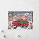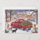 Una tarjeta de Navidad con un pueblo, un camión rojo y un árbol de Navidad rodeado de un grupo de cachorros juguetones. Este diseño fue creado por Debbie Quick de Debs Creative Images.