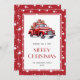 Tarjetas de Navidades rojos retro personalizado con un camión rojo clásico, caída de nieve y estrellas. Personalice fácilmente estas tarjetas de Navidades de camiones de color rojo con su nombre familiar.