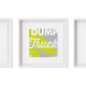 Un camión volcado con neón amarillo y blanco es 3 en una serie de tres de arte de pared infantil.