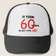 ¿Buscando un regalo de broma para el hombre que cumple 60 años? Este gorra será el hallazgo perfecto. Con las palabras "tardó 60 años en llegar a este gorra", al hombre con buen sentido del humor le encantará este gorra. El gorra también es bueno para cualquiera que necesite ideas de regalo de cumpleaños número 60. Derechos de autor Kathy Henis