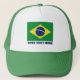Bandera brasileña del gorra de encargo del camionero del Brasil. Haga su propio casquillo para los días de fiesta del orgullo nacional, la política, el fiesta político y el acontecimiento deportivo internacional como el fútbol, golf, rugbi, grillo, el tenis etc. añade su propia cita o lema divertida. Diseño del headwear de la diversión. Disponible en los colores blancos, azules, rojos, verdes, negros, rosados y otros. Orgullo brasileño.