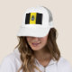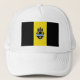 Gorra con bandera de la ciudad de Pittsburgh, Pennsylvania; bandera con tres bandas verticales de negro y amarillo con ilustracion de castillo y escudo en el centro