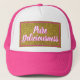 Muéstrate lo mejor con el gorra de este camionero rosado con un falso purpurina de oro que dice "pureza en la pureza". Es genial para los días del "mal cabello". Personalizar que haga que las palabras lean lo que usted desea.