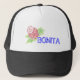 El gorra del camionero con la mano dibujada subió en rojo y las hojas del rosa ponen verde, expresan bonito del significado del "bonita" en español