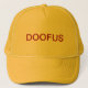 EL GORRA AMARILLO DICE "DOOFUS" EN LETRAS ROJAS