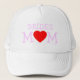 Madre de la Boda de la novia Gorra de ensayo blanco y de la tapa rosada tiene un corazón en lugar de la "O" en "MOM". Gorra designa su condición especial durante el ensayo boda...y después, también. ¡Ideal también para vestirse en bodas informales, informales, en la playa o junto a la piscina!