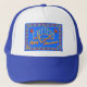 ¡Go out se vistió en estilo en este gorra azul de Jánuca con un gran mensaje de Jánuca en ella también! La imagen es compuesta totalmente de arte digital por Eve Hannigan.