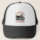 Una gorra que presenta una motocicleta retro, con la frase "Romper con la rutina" centrada alrededor de la imagen. El diseño sugiere un sentido de aventura y libertad, ofreciendo una escapada pacífica de la rutina diaria.