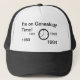 Pasan los años. Usa a este gorra para proclamar "¡Estoy en tiempo de genealogía!" Debajo del texto hay una cara de reloj con años flotantes rodeándola.