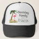 Este gorra del camionero del flamenco y de la palmera es el gorra perfecto para su fiesta temático de la reunión de familia del flamenco. Personalizar con su apellido, el año, y la ubicación de la reunión.