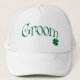Esta gorra de bola verde y blanca "Groom" tiene un trébol de cuatro hojas afortunado.