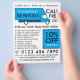 Camioneta de desmontaje azul, volante publicitario de la empresa de eliminación por la tienda de tarjetas de visita.