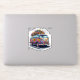 Una furgoneta encantadora y retro está repleta de equipajes coloridos y adornada con pegatinas de flores juguetones, lo que da una sensación de aventura.