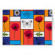 Cajas coloridas y adornos dibujados a mano, margarita y mariposa, patrón vectorial sin fisuras
