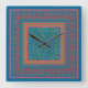 Un reloj de pared cuadrado colorido al personalizar, con un patrón de mezcla de los patrones de amapola y amapola en un fondo azul profundo que se puede cambiar si se desea. De un collage de papel pintado a mano por Judy Adamson; parte de la colección "Campos de adormidera" de Posh & Painterly.