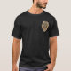 Esta camisa es negro y tiene una insignia del agente de la seguridad de la fianza en el frente. En la parte posterior están las esposas nuestro agente del nombre de compañía y "de la seguridad de la fianza"