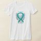 La conciencia sobre el ataque sexual usa una cinta verde azulada para concienciar a la gente sobre su causa. El arte de la camisa muestra una verde azulada pintura de ángel de cinta de reconocimiento. El mensaje frontal de la camiseta del ángel de la conciencia señala "Conciencia ESPERANZA agresión sexual". En la parte posterior de la camisa aparece el mensaje de la causa "Espero y apoyo la toma de conciencia para terminar con el ataque sexual". La ropa de arte de la cinta de ángel de la conciencia verde azulada se puede personalizar con mensajes personalizados para hacer ropa de evento de gran causa para camisetas de recaudación de fondos, camisetas de caminatas de equipo de grupo, regalos de camisetas de concientización u otros eventos de causa especial para la mercadería, para ayudar a aumentar la conciencia de esta causa en público por la ayuda de la sociedad en crear ayuda y causar cambio.