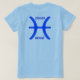 Símbolo del zodiaco de Piscis con "Piscis" dentro en azul en la parte posterior, y "un símbolo circular del zodiaco del planeta" en oro en el frente.