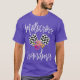 El color es muy bonito al natural, como la foto. El tejido es suave y de buena calidad. Sin defectos en el tintado, ni hilos sueltos o descosidos. Bien la impresión. Los bordes de las letras y el dibujo son nítidos, y el color contrasta muy bien con el de la camiseta.