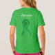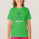 La conciencia de la depresión usa una cinta verde. El pasador de la cinta de reconocimiento muestra la pintura de una cinta de reconocimiento verde en una camiseta. La cinta de sensibilización pendant señala "Conciencia sobre la depresión". El mensaje de la camisa puede ser actualizado a su propia redacción de mensaje de conocimiento personal. Los camisetas de arte de la cinta de conciencia verde pueden ser personalizados con mensajes personalizados para hacer botones de gran causa para los camisetas de caminatas del equipo de recaudación de fondos, regalos de camisetas de concientización u otros eventos especiales para ocasiones de concientización. Ver más de nuestro arte en AwarenessGallery.com. En asociación con DonnaBellas Angels.org