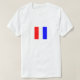 Esta camisa humorística muestra una bandera internacional de señal marítima en la parte delantera, y su significado en la parte trasera: "MANTENTE CLARO DE MÍ". También disponible en una camisa de color oscuro.