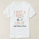 Camisetas y regalos de Groom Engagement. Le puse un anillo a los favores del novio prometidos, camisetas y bolsitas para el novio que acaba de proponer matrimonio. Personalizar estos regalos de compromiso con la fecha o el lugar en que se planteó la pregunta.