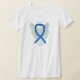 La conciencia de ALS (esclerosis lateral amiotrófica) utiliza una cinta azul para la toma de conciencia de la causa. El arte de la camisa muestra una pintura de ángel de la cinta de reconocimiento azul. El mensaje principal de la camiseta del ángel de la conciencia dice "Believe CURE ALS". En la parte posterior de la camisa aparece el mensaje de la causa "Espero y apoyo la toma de conciencia para curar la ELA". La ropa de arte de la cinta de ángel de la conciencia azul se puede personalizar con mensajes personalizados para hacer ropa de evento de gran causa para camisetas de recaudación de fondos, camisetas de caminatas de equipo de grupo, regalos de camisetas de concientización u otros eventos de causa especial para la mercadería para ayudar a aumentar la conciencia de esta causa en público por la ayuda de la sociedad en crear ayuda y causar cambio.