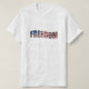 Muestre su patriotismo con esta camisa del texto de la bandera americana con el texto ondulado estilizado de la libertad.