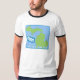 El color es muy bonito al natural, como la foto. El tejido es suave y de buena calidad. Sin defectos en el tintado, ni hilos sueltos o descosidos. Bien la impresión. Los bordes de las letras y el dibujo son nítidos, y el color contrasta muy bien con el de la camiseta.