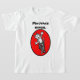 La camiseta muestra un mono con cuernos en un uniciclo, junto con las palabras francesas, "Mauvais Singe", que significan: "Mal mono".