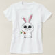 Camiseta de mujer con un diseño distintivo de conejo sosteniendo una zanahoria en su mano