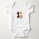Una primera camisa del cumpleaños que ofrece una tela escocesa número uno del búfalo rojo y negro con un ilustracion del zorro del bebé. Personalice el nombre.