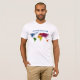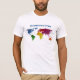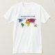Diseño adaptable de la camisa con el ilustracion del mapa del mundo con los continentes coloridos. Usted puede personalizarlo con su propio texto o elegir un diversos estilo y color de la camisa.