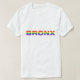 ¡Muestre a su Bronx el orgullo gay! Para la comunidad de LGBT en Bronx y más allá. Los colores del arco iris sobrepuestos en la letra "BRONX".